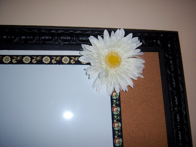For the white board we bought the biggest white board we could find at Target and the cork we bought at Robert's by the roll we bought 2 24" rolls but only needed one. We used the original picture to attach the white board and cork board board with the glue "E 6000" From there i was in charge of the embellishments and then it was done!