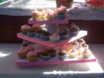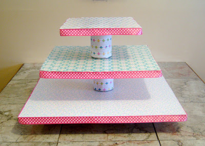 this tutorial to make a cupcake stand. I made it my own by using foam board and using squares instead of circles. The dimensions I used are the following:
